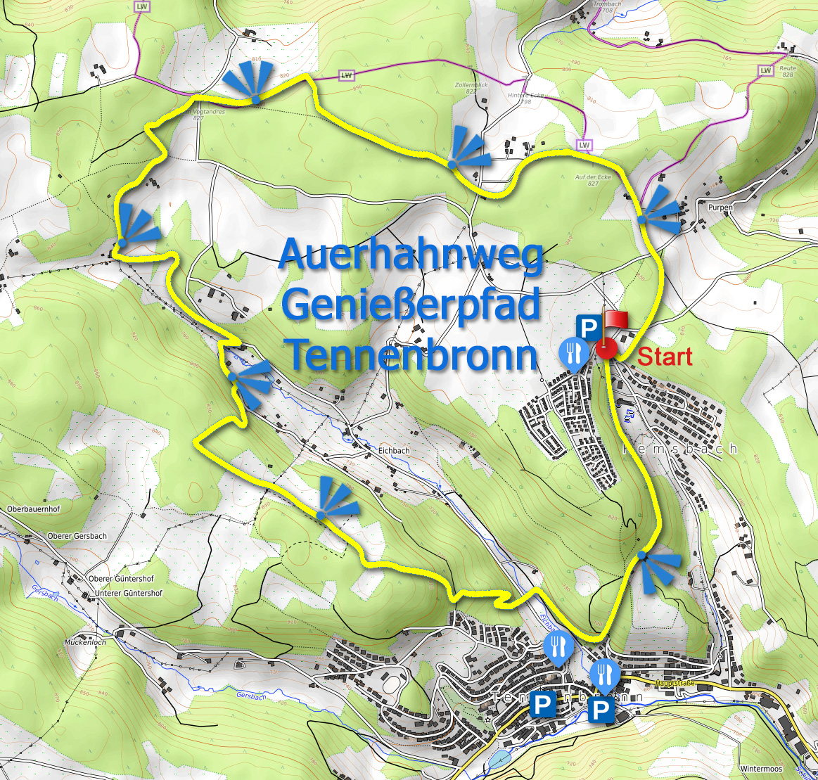 Hier sehen Sie einige landschaftliche Höhepunkte auf dem Auerhahn Wanderweg Tennenbronn.